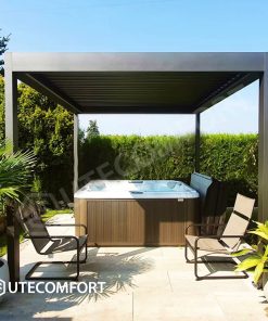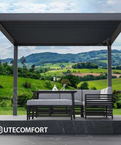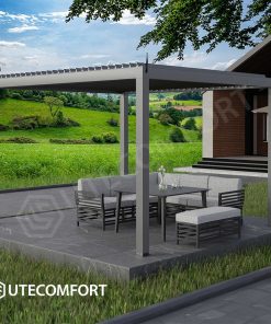 Pergola SB350 er en kompakt og funksjonell løsning designet for enkel montering og pålitelig bruk. Denne modellen er laget av ekstrudert aluminium og leveres kun som frittstående konstruksjon. Systemet er utviklet for maksimal brukervennlighet og kan installeres selv ved hjelp av produsentens detaljerte monteringsveiledning. Pergolaen leveres i faste mål: bredde 3,5 m og fri høyde 2,5 m. Den kan bestilles med dybde (utstrekning) på 3,4 m, 3,85 m, 4,3 m eller 4,75 m. Taket består av flate lameller som ved lukking danner en jevn og tett overflate. To integrerte renner med fire dreneringspunkter leder regnvann direkte gjennom stolpene, noe som sikrer effektiv bortledning og et rent uttrykk.Systemet styres med elektrisk motor og fjernkontroll. Kontrollenheten kan plasseres fleksibelt i bærebjelkene for enkel installasjon og service.SB350 produseres i to moderne farger – hvit (RAL 9016 matt) og antrasitt (RAL 7016 matt) – som passer perfekt til de fleste byggestiler.