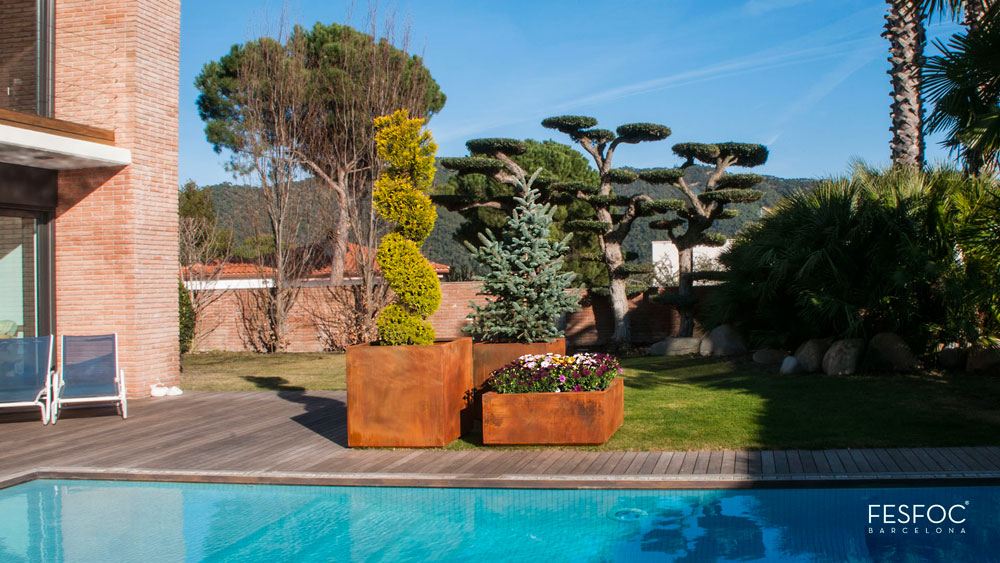 Utecomfort AS tilby deg moderne, klassiske og solid plantekasse Kubik i rust corten stål fra Fesfoc Barselona til din egen lille oase i Oslo og Akershus, Norge