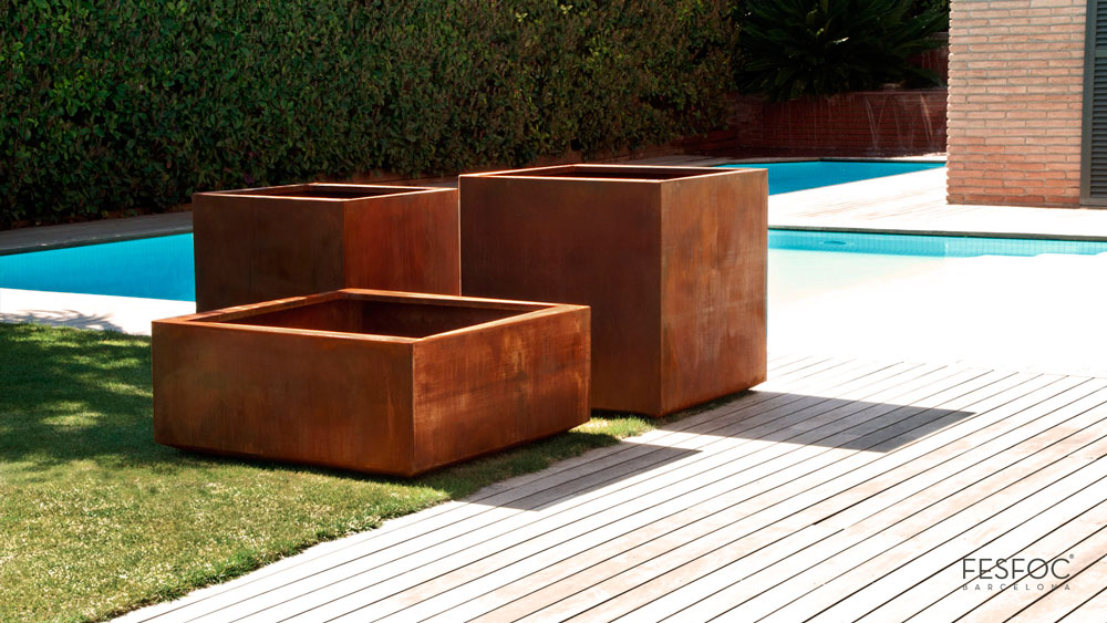 Utecomfort AS tilby deg moderne, klassiske og solid plantekasse Kubik i rust corten stål fra Fesfoc Barselona til din egen lille oase i Oslo og Akershus, Norge
